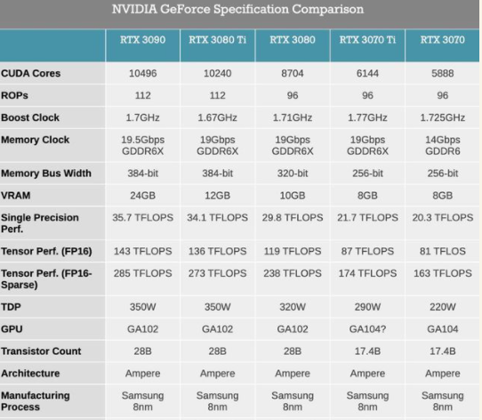 3080Ti和3070Ti分別于6月3日和6月10日發(fā)售,售價(jià)為1199美元(國行8999元)和599美元(國行4499元)。對于1499美元RTX3090的消費(fèi)者,可以考慮性價(jià)比高的3080Ti。