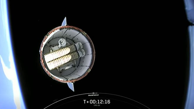 貨船的行李箱里還裝有兩塊新的太陽能電池板,它們可以幫助改善空間站的電力供應(yīng)。RedwireSpace和波音共同負(fù)責(zé)建造這些柔性面板,它們將于本月晚些時候安裝。這類太陽能電池板被稱為ROSA,是六種新型太陽能電池板中的第一批。這類太陽能電池板也將用于未來的空間任務(wù),包括NASA即將進(jìn)行的雙小行星重定向測試(DART)和月球空間站Gateway。