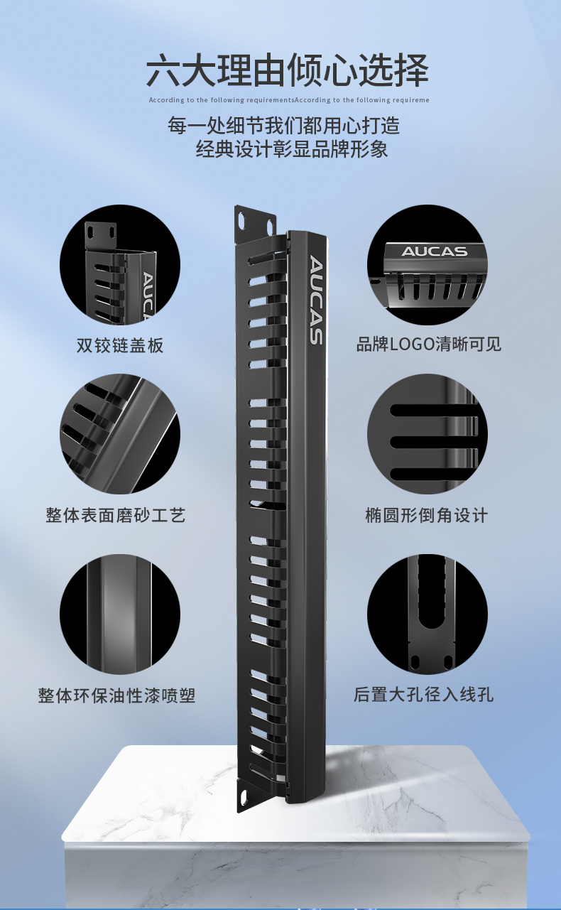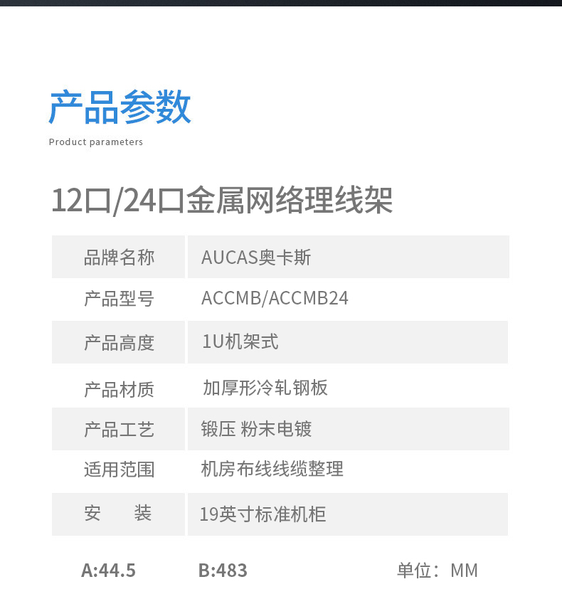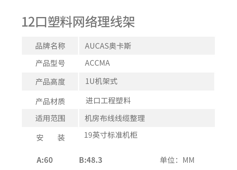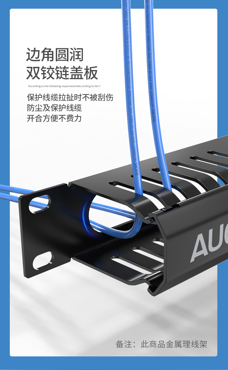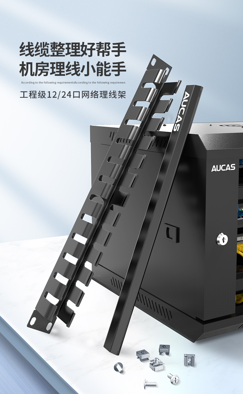 上方與下方均有12、24槽開口,方便線纜管理 、理線架容量大,深度達(dá)70-80mm,能管理更多跳線 、上、下方向及后側(cè)都有進(jìn)線口 、材料:AUCAS(奧卡斯)理線架有鋼質(zhì)與ABS塑料UL94V-O防火等級兩種