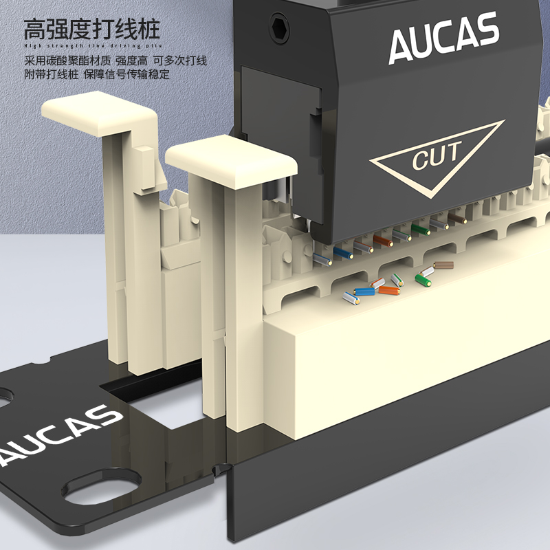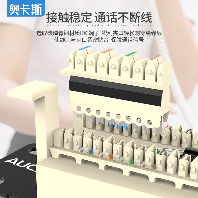 傳輸性能參數(shù)滿足ISO/IEC 11801和ANSI/TIA 568-C.2標(biāo)準(zhǔn)。4對(duì)和5對(duì)卡接針為磷青銅絲線鍍金,防止表面氧化,提高接觸性能,保證性能及使用壽命。連接部由4對(duì)和5對(duì)110連接塊組成;110型打線塊結(jié)構(gòu),分線更容易、施工更快捷,可搭配110打線工具使用。