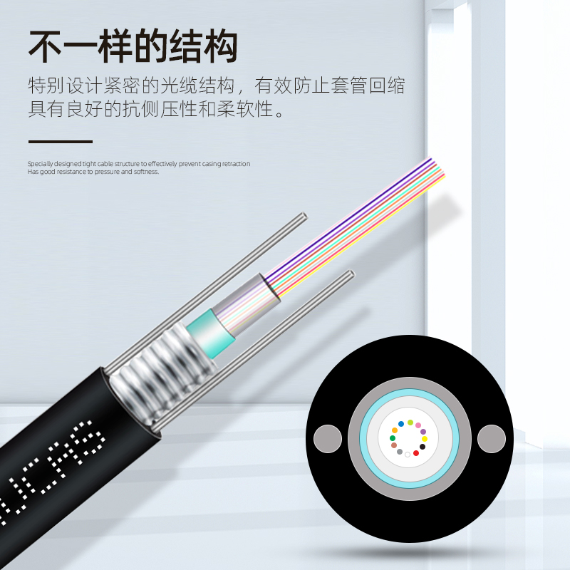 GYXTW單模/多模室外中心束管式光纜,符合YD/T769-2010標(biāo)準(zhǔn),套管內(nèi)填充特種防水化合物,完全纜芯填充油膏或加阻水帶涂塑鋼帶防潮層,阻水帶縱包防止光纜的縱向滲水,兩根平行鋼絲保證光纜的抗拉強(qiáng)度,PE護(hù)套具有很好的抗紫外線輻射性能及耐環(huán)境應(yīng)力開裂性能。