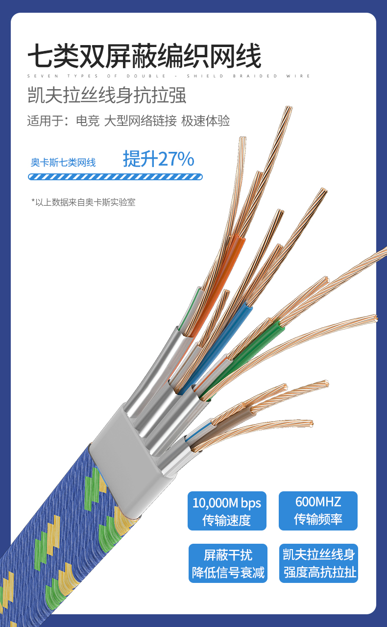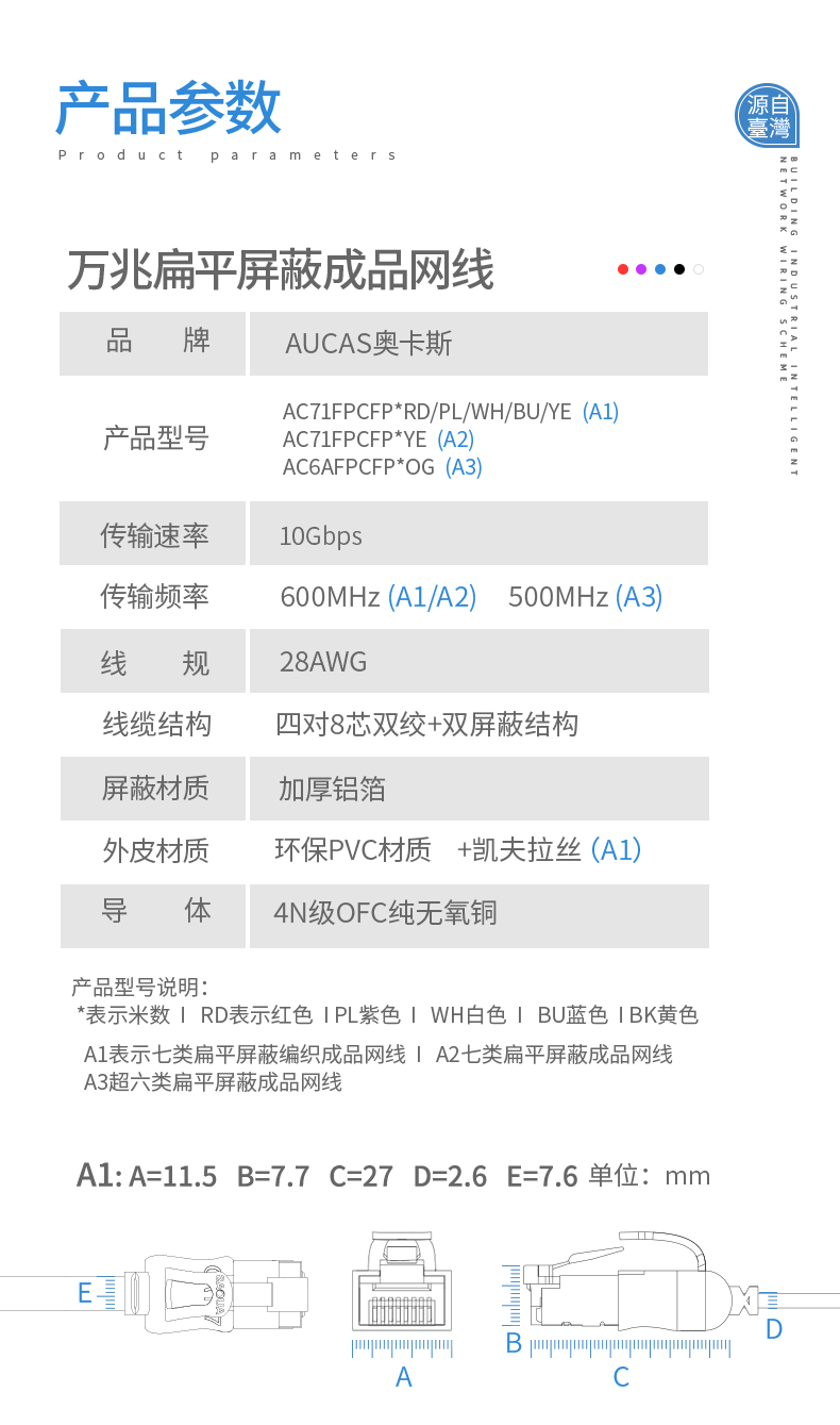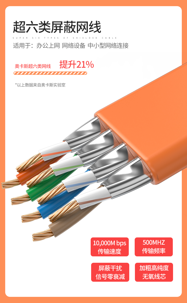 超六類(lèi)扁平跳線,速率可達(dá)萬(wàn)兆,頻率達(dá)250MHz。主要作為監(jiān)控、語(yǔ)音、數(shù)據(jù)、多媒體等的傳輸載體,適用于家庭游戲、影音等娛樂(lè)設(shè)備。