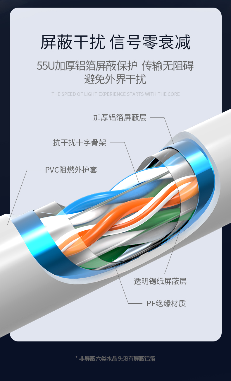 六類跳線,速率可達(dá)千兆,頻率達(dá)250MHz。主要作為監(jiān)控、語(yǔ)音、數(shù)據(jù)、多媒體等的傳輸載體,適用于家庭游戲、影音等娛樂(lè)設(shè)備。
