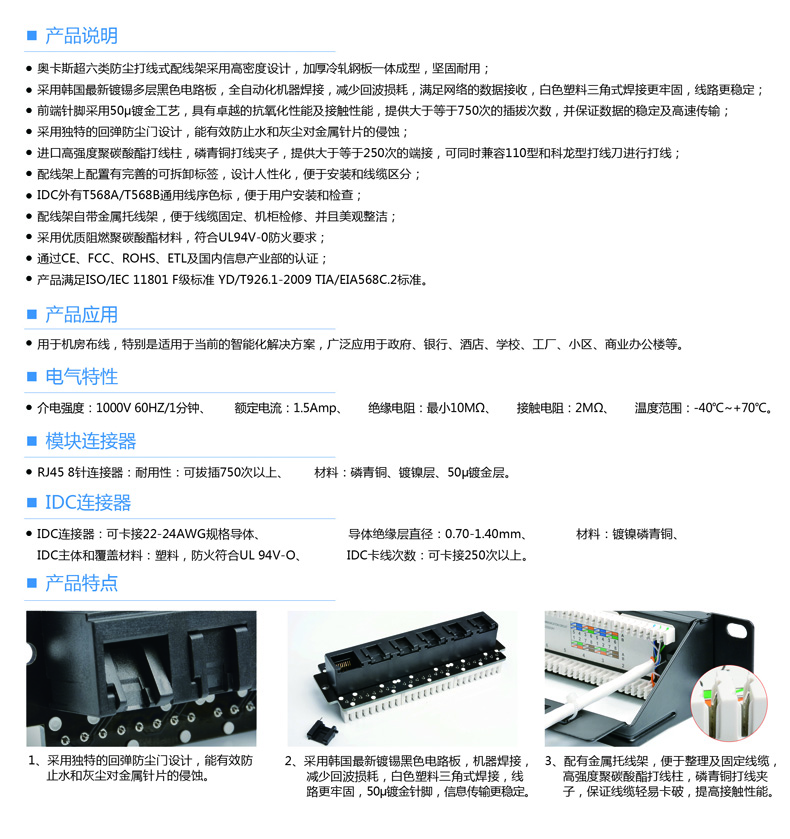 CAT6A 超六類防塵配線架,用于機房布線,特別是適用于當前的智能化布線解決方案