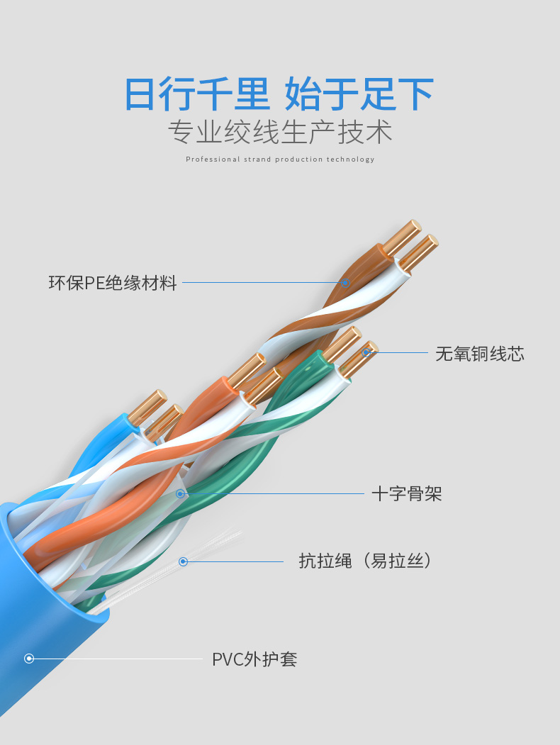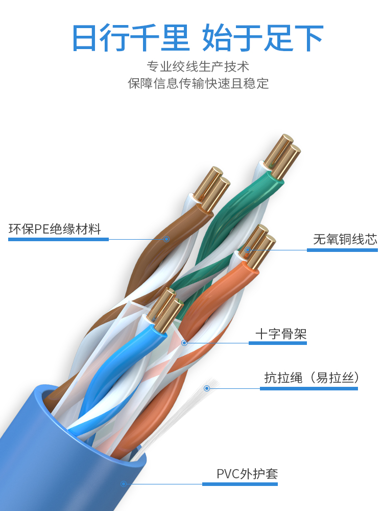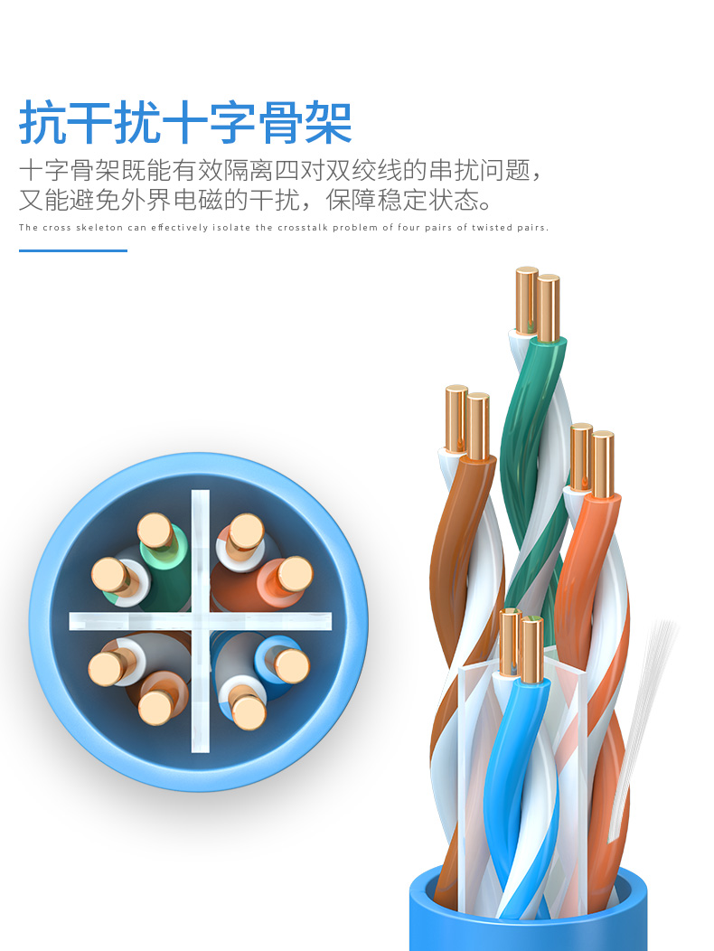 雙向螺旋結(jié)構(gòu)線(xiàn)纜,傳輸性能穩(wěn)定,速率:1000Mbps,帶寬:250Hz