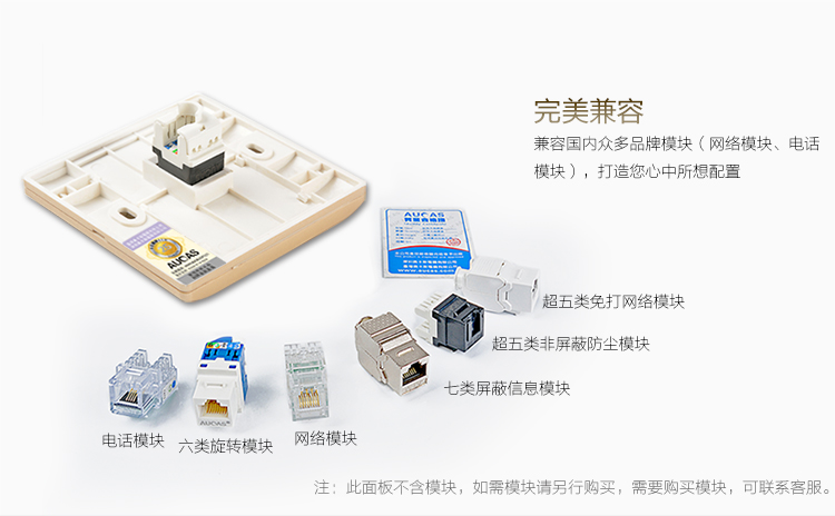 適用于各類網(wǎng)絡工程,辦公,居家使用,斜口引導插入,更顯美觀,可安網(wǎng)絡信息模塊RJ45接口、語音RJ11電話模塊和CATV有限電視模塊安裝,拆卸方便。
