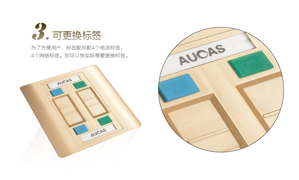 適用于各類網(wǎng)絡(luò)工程,辦公,居家使用,斜口引導(dǎo)插入,更顯美觀,可安網(wǎng)絡(luò)信息模塊RJ45接口、語音RJ11電話模塊和CATV有限電視模塊安裝,拆卸方便。