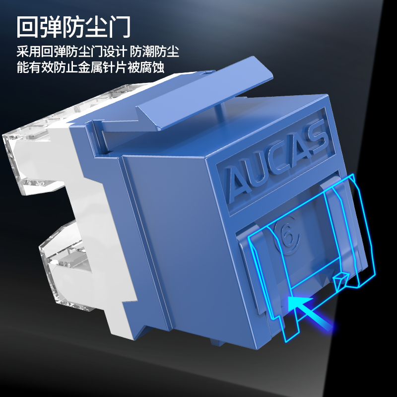 AUCAS(奧卡斯) Cat.6局域網(wǎng),傳輸語言、數(shù)據(jù)信號(hào),支持當(dāng)前的高帶寬應(yīng)用,可以安裝到墻面信息面板上,固定在桌面信息盒中或模塊化配線架上,并可插拔RJ11/RJ45。