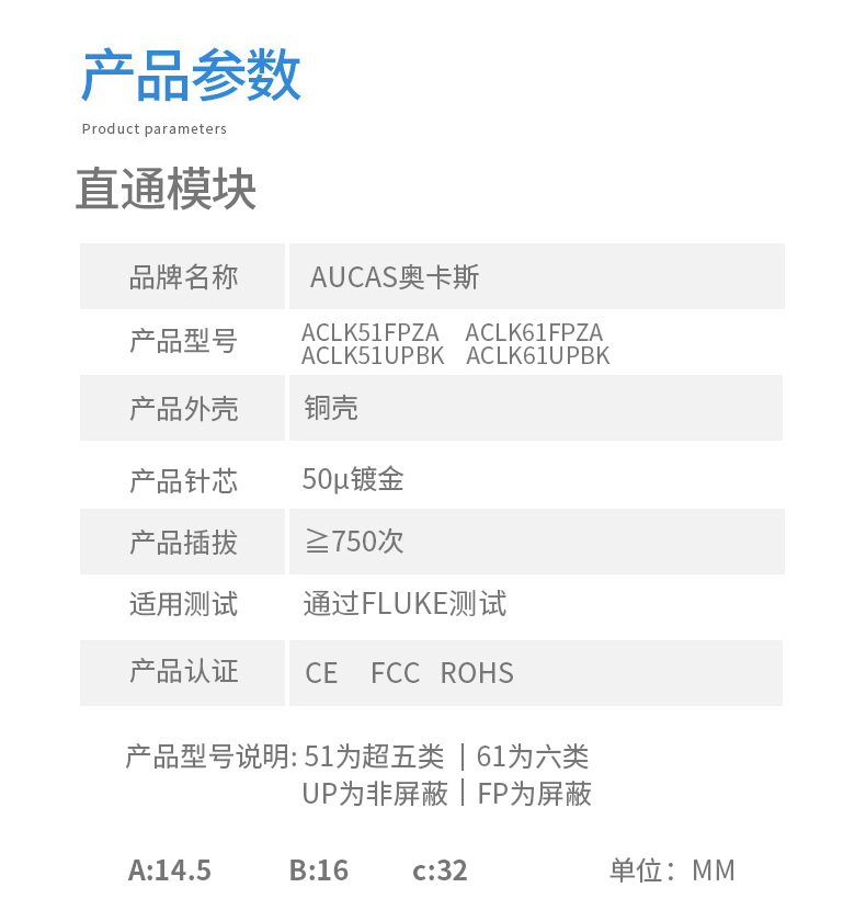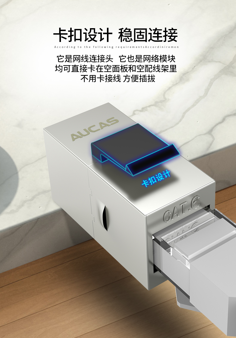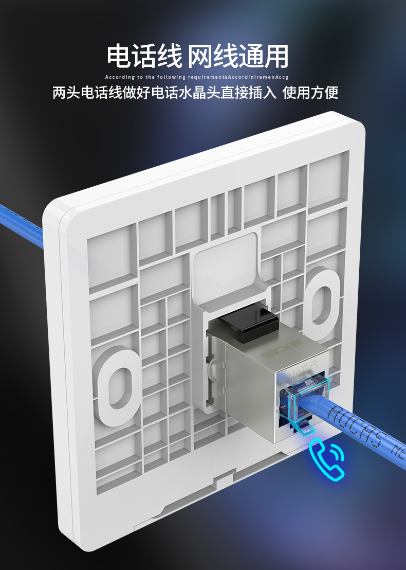 AUCAS(奧卡斯) Cat.6局域網(wǎng),傳輸語言、數(shù)據(jù)信號,支持當(dāng)前的高帶寬應(yīng)用,可以安裝到墻面信息面板上,固定在桌面信息盒,并可插拔RJ11/RJ45。
