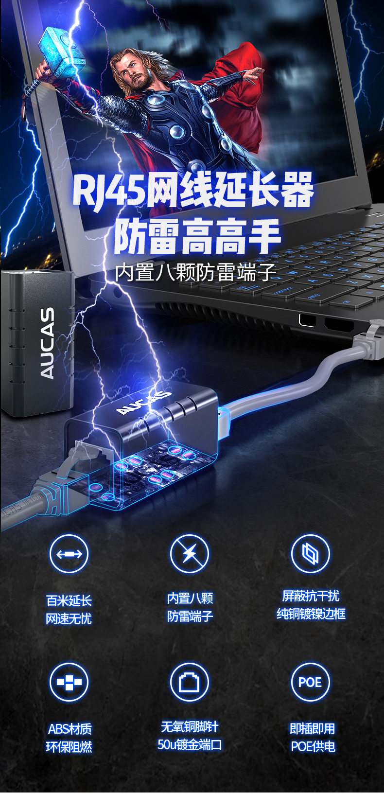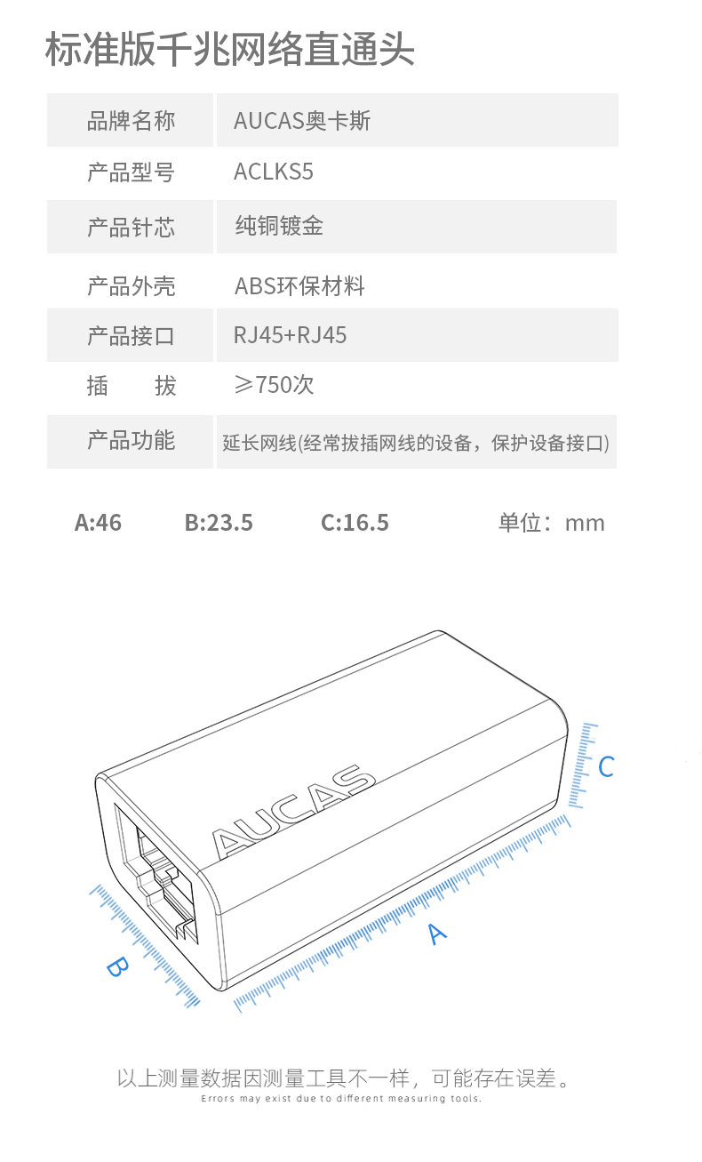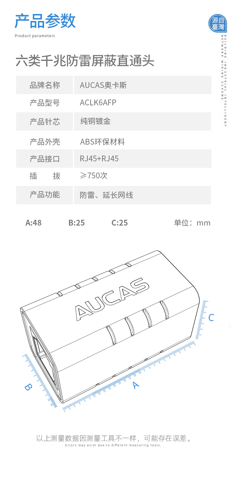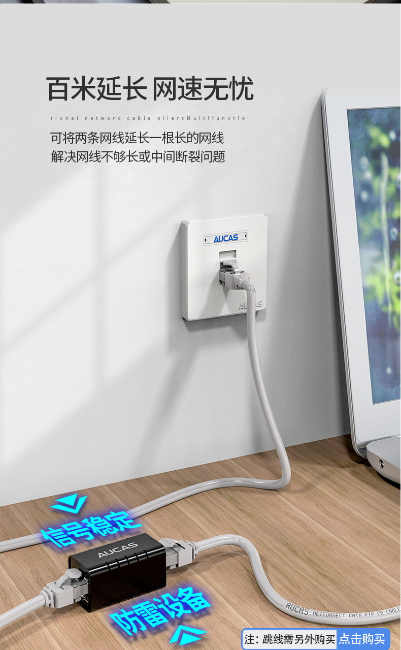 AUCAS(奧卡斯) Cat.6局域網(wǎng),傳輸語言、數(shù)據(jù)信號,支持當(dāng)前的高帶寬應(yīng)用,并可插拔RJ45。