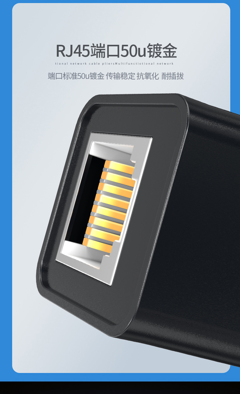 整體采用Press Fit技術(shù),無焊點(diǎn)電路板,可提高性能及降低污染。 通過TLC認(rèn)證,保證NEXT值超越ANSI/TIA 568 .2-D Cat.5e的要求,及六點(diǎn)連接Channel測試認(rèn)證。
