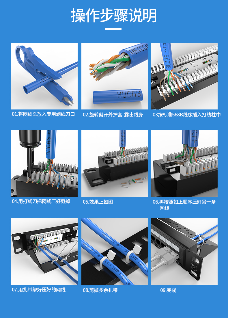性能超過TIA/EIA 和ISO 標準 配線架作為布線系統(tǒng)的一部分進行設(shè)計生產(chǎn)和測試 通用線序標簽支持T568A 和T568B 端接線序
