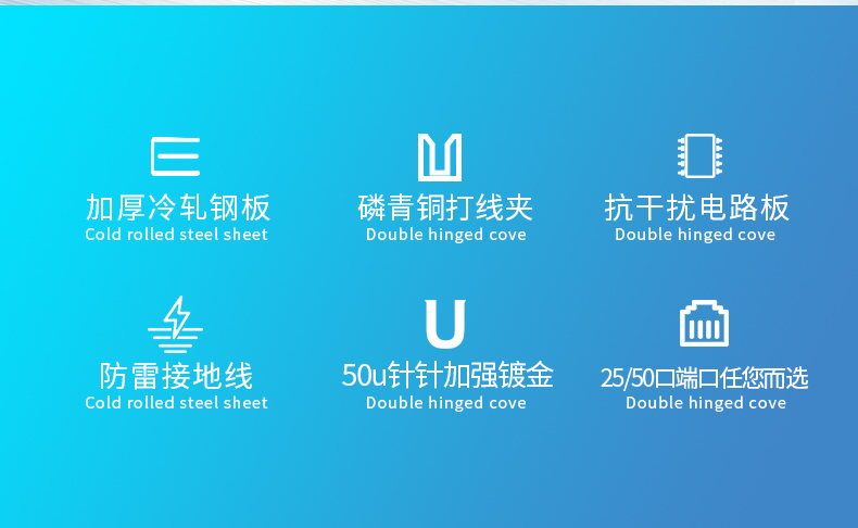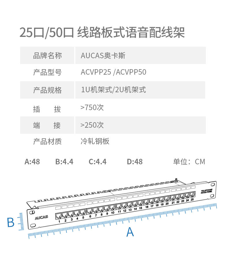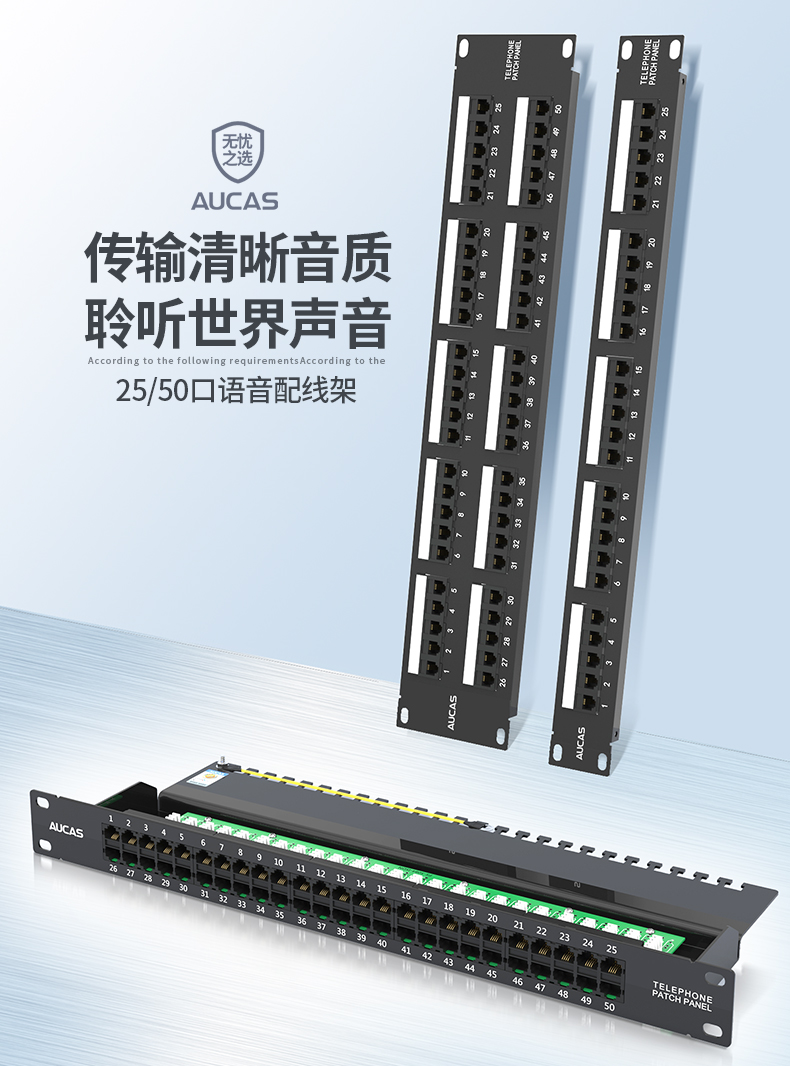 高密度設(shè)計(jì),1U 25口 3U 50口,標(biāo)準(zhǔn)19英寸配線架。