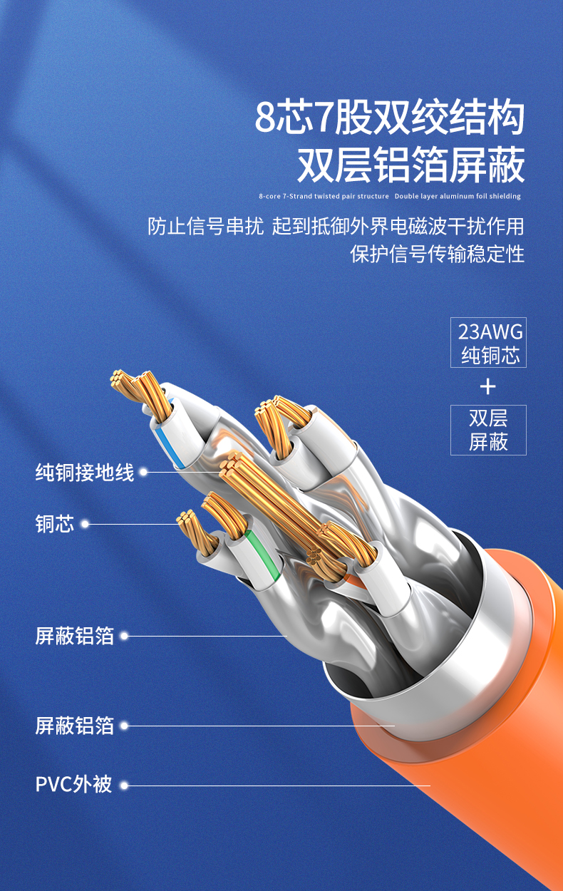 線纜結(jié)構(gòu):4對8芯雙絞+雙屏蔽構(gòu)造