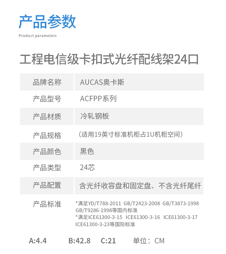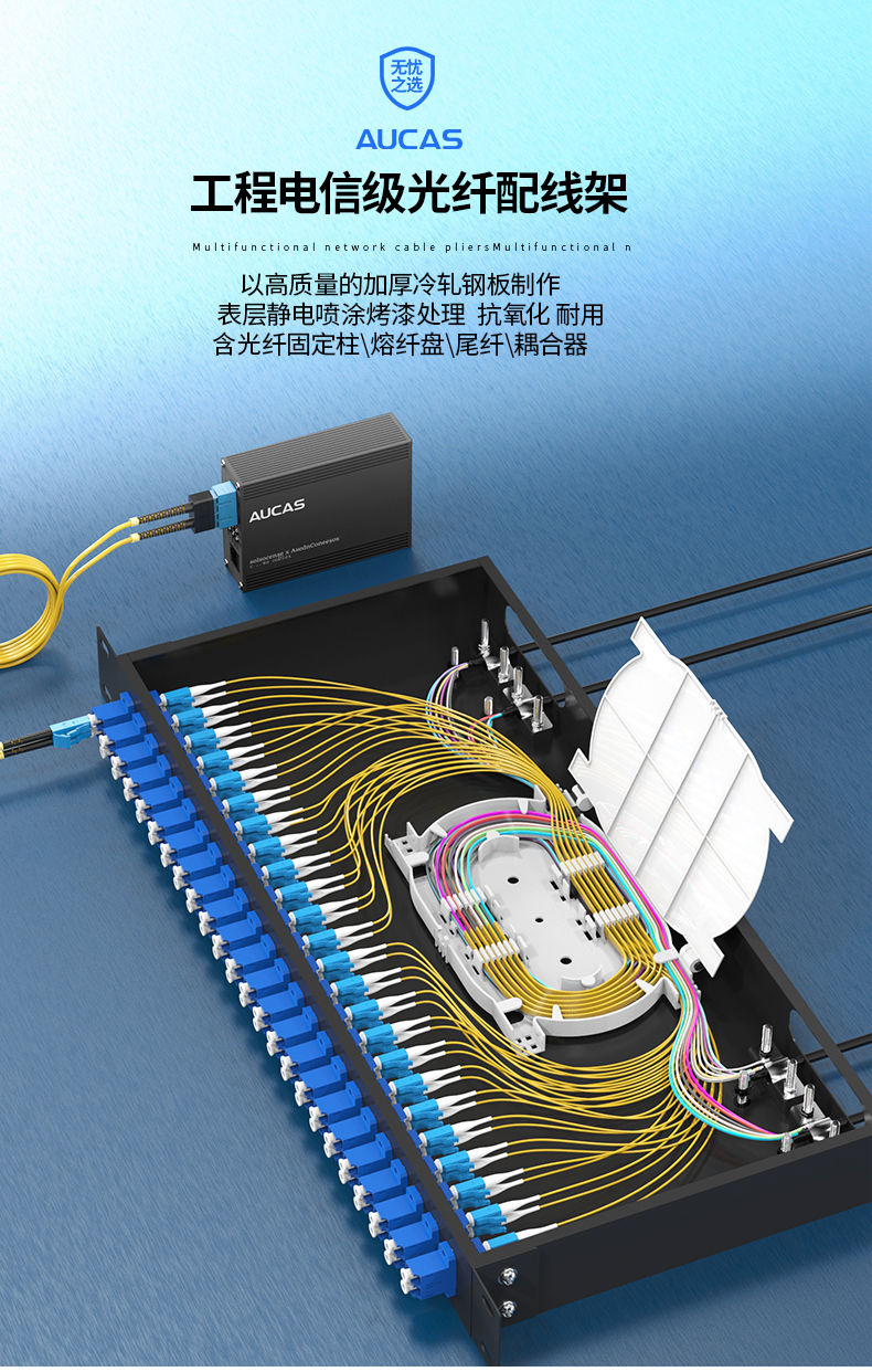 以高質(zhì)量的冷軋鋼板制作,表層靜電噴涂烤漆處理,外觀精美。通用型面板設(shè)計(jì),可安裝ST/ SC/ LC /FC等不同類型耦合器、易拆卸前蓋及上蓋扣設(shè)計(jì),免工具即可拆卸前蓋及上蓋板,裝卸更為容易
