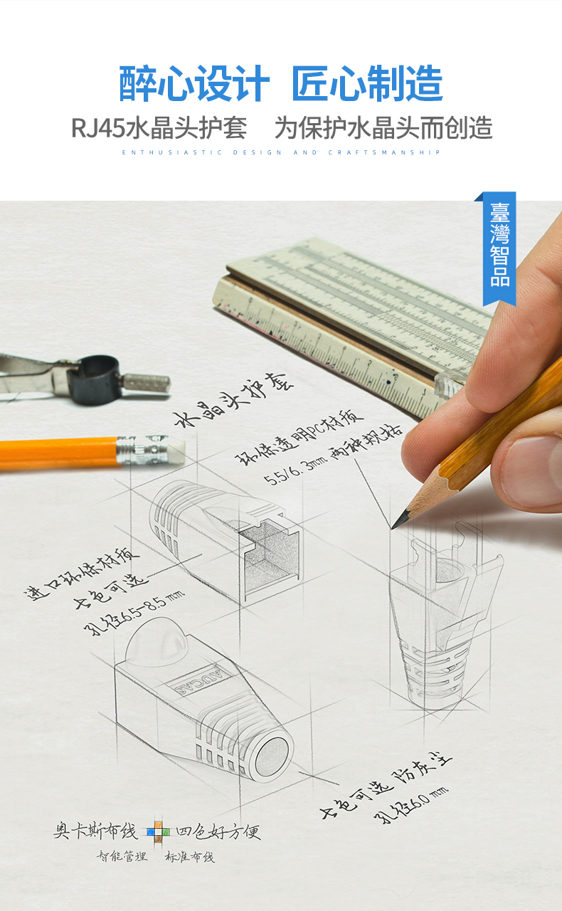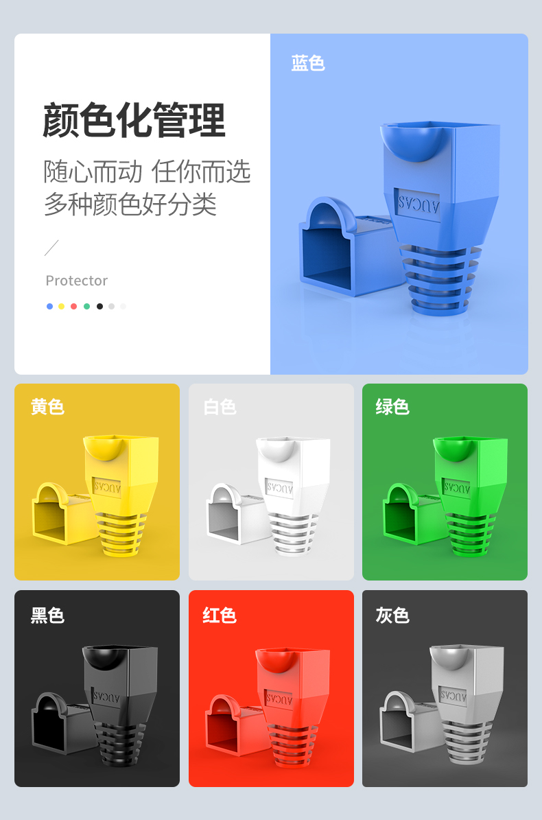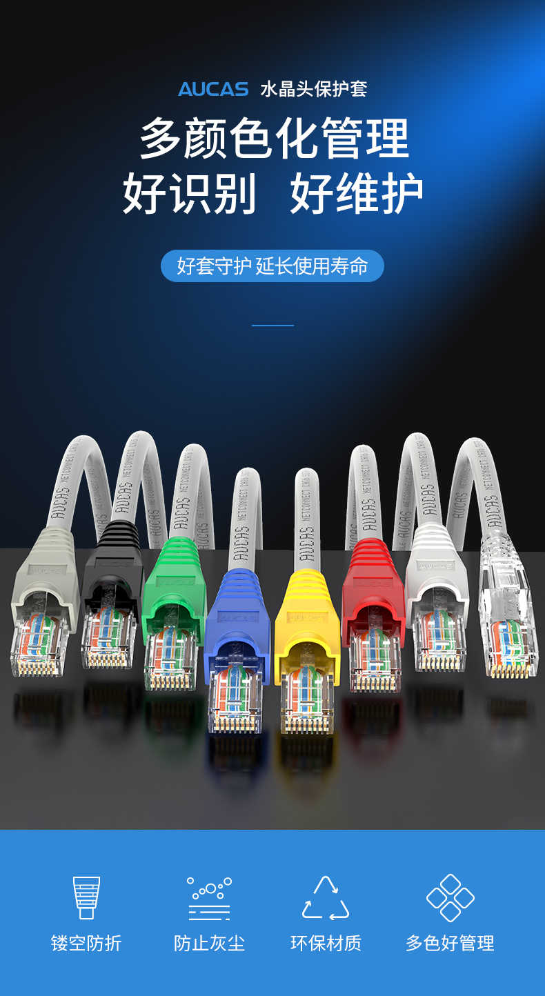 奧卡斯超五類六類水晶頭護套;多顏色化管理,好識別,好維護