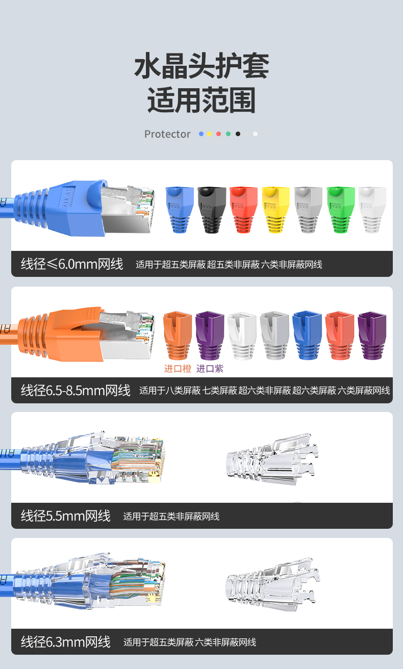 奧卡斯七類水晶頭護(hù)套;多顏色化管理,好識別,好維護(hù)