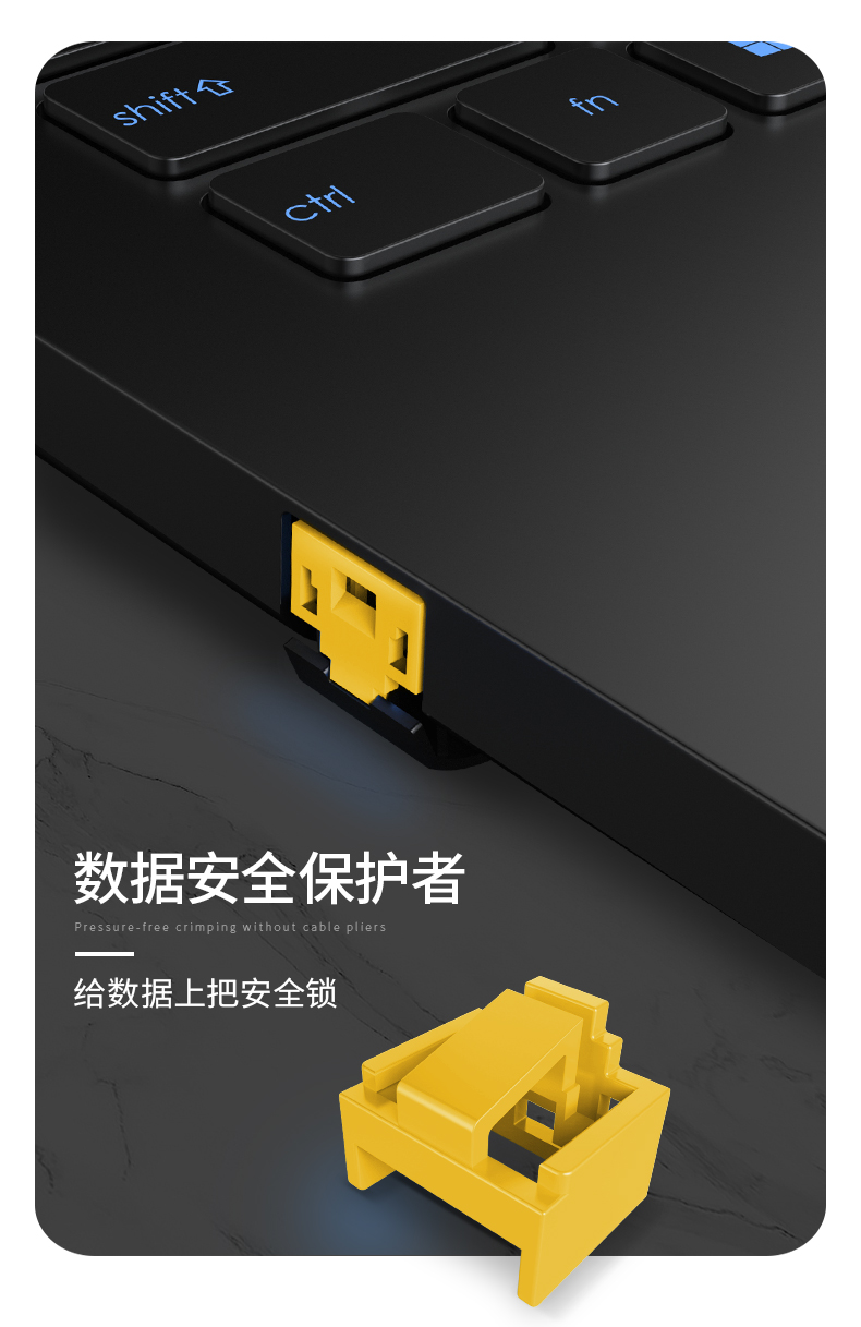 采用高阻燃 PC+ABS 工程材料 可提供紅、黃、藍(lán)、綠、四種顏色選擇,方便從顏色識(shí)別網(wǎng)絡(luò)信息系統(tǒng) 常規(guī) RJ45 網(wǎng)絡(luò)插座端口專用,用于鎖住不使用的 RJ45 網(wǎng)絡(luò)接口 搭配專用解鎖工具,用于取下通用 RJ45 端口鎖