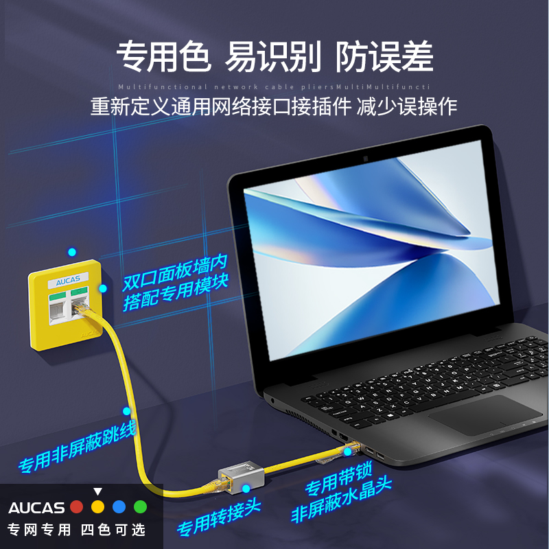通過結(jié)構(gòu)化設(shè)計調(diào)整將 RJ45 網(wǎng)絡(luò)模塊防塵蓋接口轉(zhuǎn)換成專用網(wǎng)絡(luò)接口,防止常規(guī)網(wǎng)絡(luò)跳線誤插RJ45 水晶頭搭配專用解鎖工具防止誤插拔功能,需專用解鎖工具方可取下專用網(wǎng)絡(luò)轉(zhuǎn)接頭轉(zhuǎn)接頭及連接器間線纜可提供紅、黃、藍(lán)、綠四種顏色選擇方便從顏色識別網(wǎng)絡(luò)信息系統(tǒng)