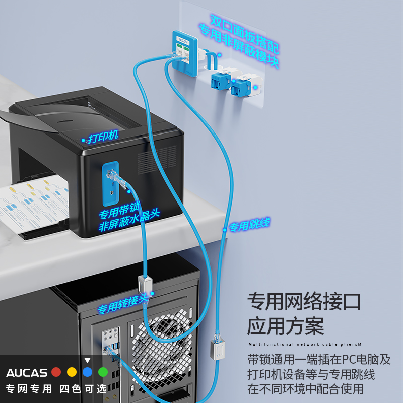 通過結(jié)構(gòu)化設(shè)計(jì)調(diào)整將 RJ45 網(wǎng)絡(luò)模塊防塵蓋接口轉(zhuǎn)換成專用網(wǎng)絡(luò)接口,防止常規(guī)網(wǎng)絡(luò)跳線誤插RJ45 水晶頭搭配專用解鎖工具防止誤插拔功能,需專用解鎖工具方可取下專用網(wǎng)絡(luò)轉(zhuǎn)接頭轉(zhuǎn)接頭及連接器間線纜可提供紅、黃、藍(lán)、綠四種顏色選擇方便從顏色識別網(wǎng)絡(luò)信息系統(tǒng)