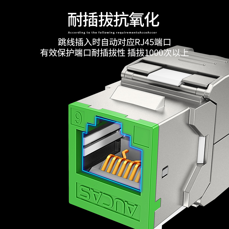 AUCAS(奧卡斯) Cat.6局域網(wǎng),傳輸語言、數(shù)據(jù)信號,支持當(dāng)前的高帶寬應(yīng)用,可以安裝到墻面信息面板上,固定在桌面信息盒中或模塊化配線架上,并可插拔RJ11/RJ45。
