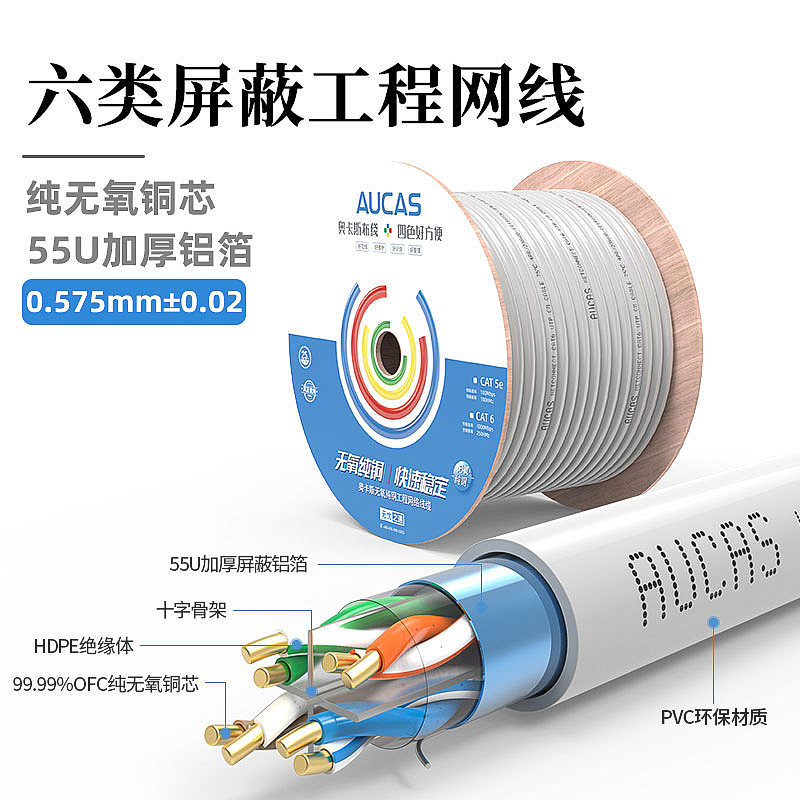 奧卡斯六類屏蔽網(wǎng)線結(jié)構(gòu)四對對絞方向和成纜總絞方向相反,又名雙向螺旋。更好的保護(hù)了熱脹冷縮帶來的衰減,可上期達(dá)萬兆速率,250MHz帶寬體驗(yàn)。