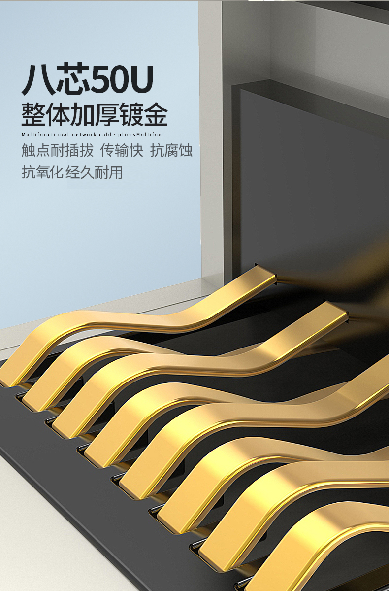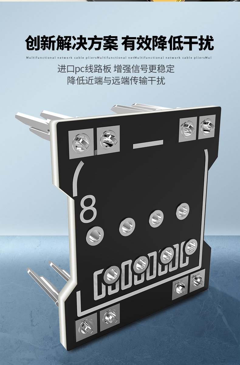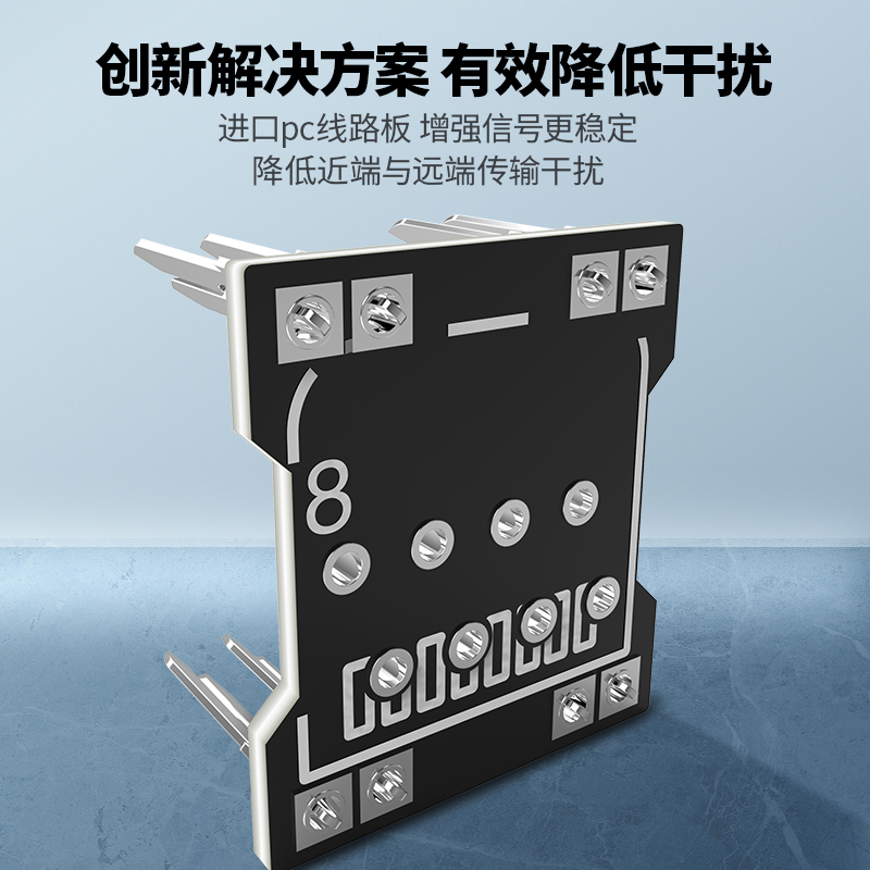 整體采用Press Fit技術(shù),無(wú)焊點(diǎn)電路板,可提高性能及降低污染。 通過(guò)TLC認(rèn)證,保證NEXT值超越ANSI/TIA 568 .2-D Cat.5e的要求,及六點(diǎn)連接Channel測(cè)試認(rèn)證。
