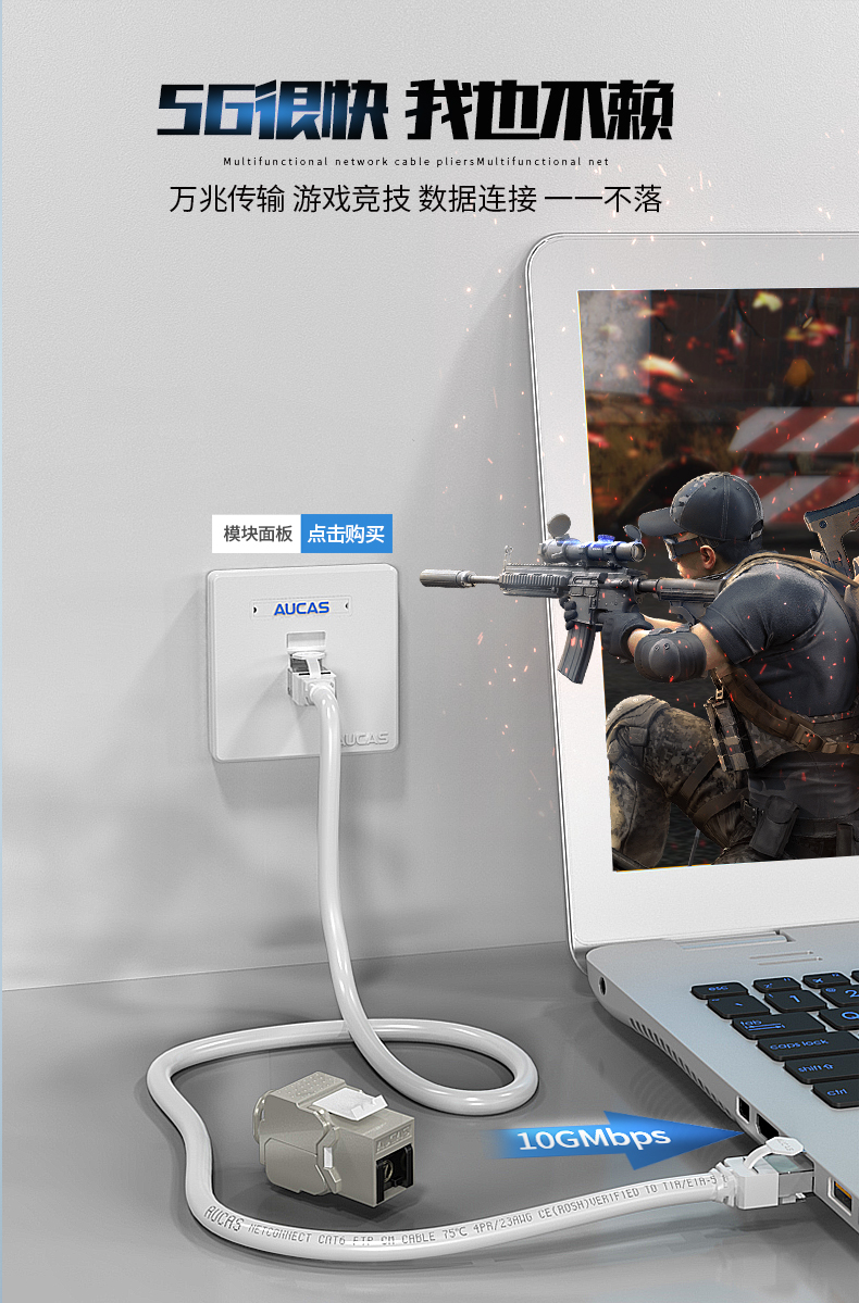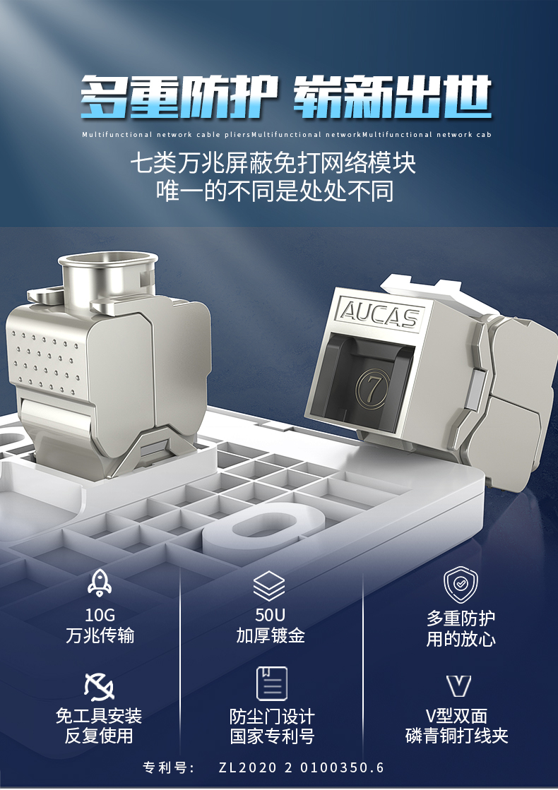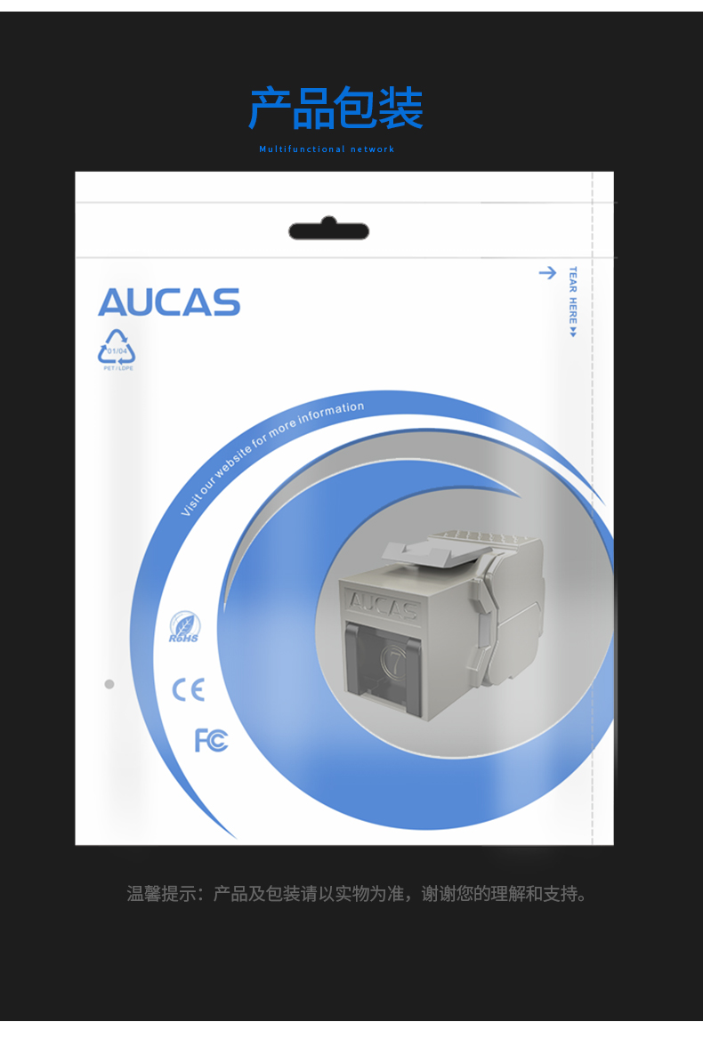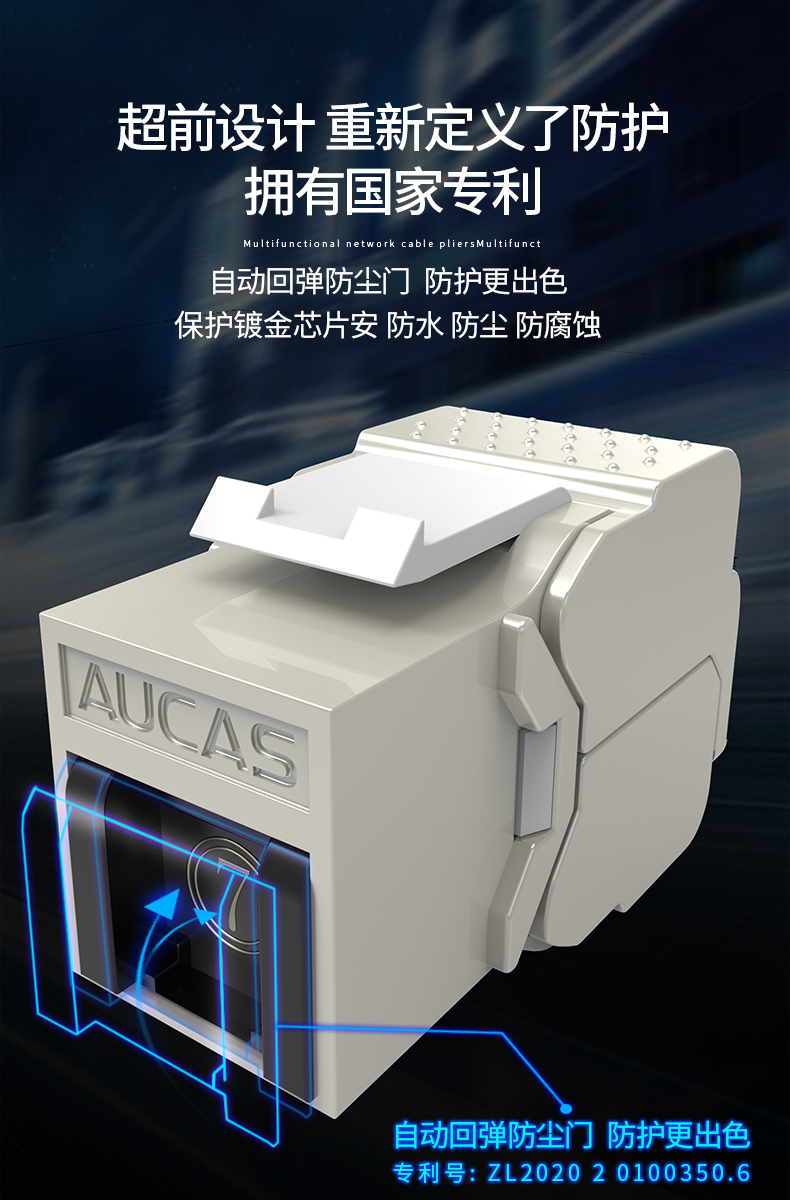 AUCAS(奧卡斯) Cat.6局域網(wǎng),傳輸語(yǔ)言、數(shù)據(jù)信號(hào),支持當(dāng)前的高帶寬應(yīng)用,可以安裝到墻面信息面板上,固定在桌面信息盒中或模塊化配線架上,并可插拔RJ11/RJ45。