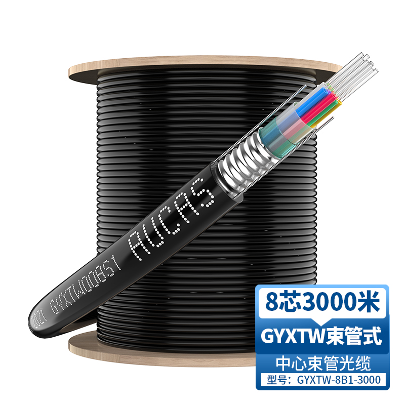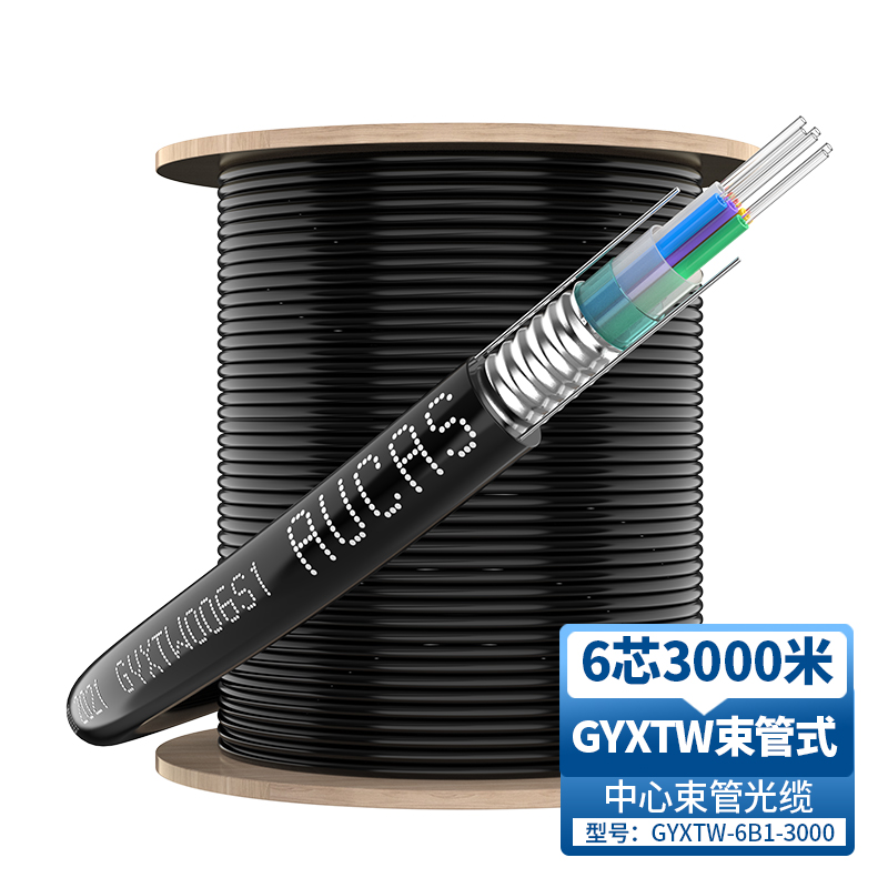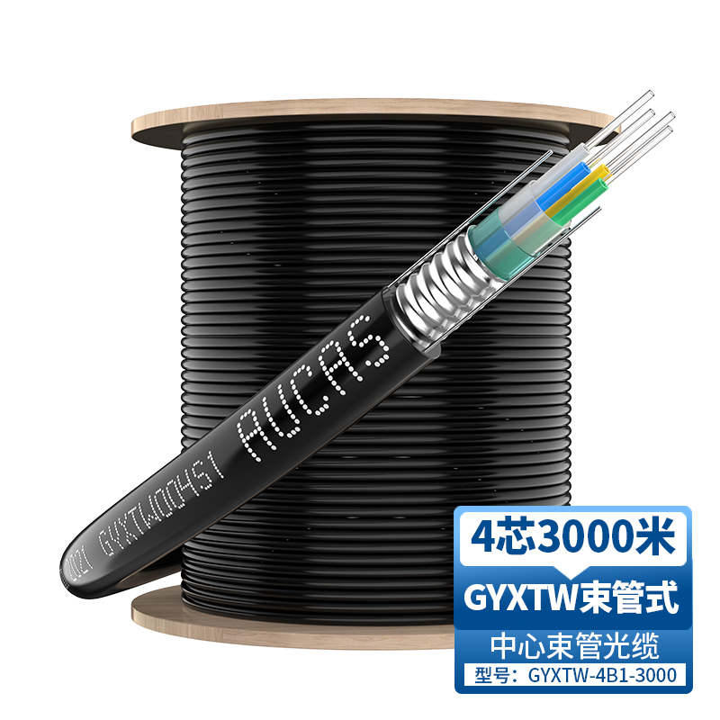 GYXTW單模/多模室外中心束管式光纜,符合YD/T769-2010標(biāo)準(zhǔn),套管內(nèi)填充特種防水化合物,完全纜芯填充油膏或加阻水帶涂塑鋼帶防潮層,阻水帶縱包防止光纜的縱向滲水,兩根平行鋼絲保證光纜的抗拉強(qiáng)度,PE護(hù)套具有很好的抗紫外線輻射性能及耐環(huán)境應(yīng)力開裂性能。